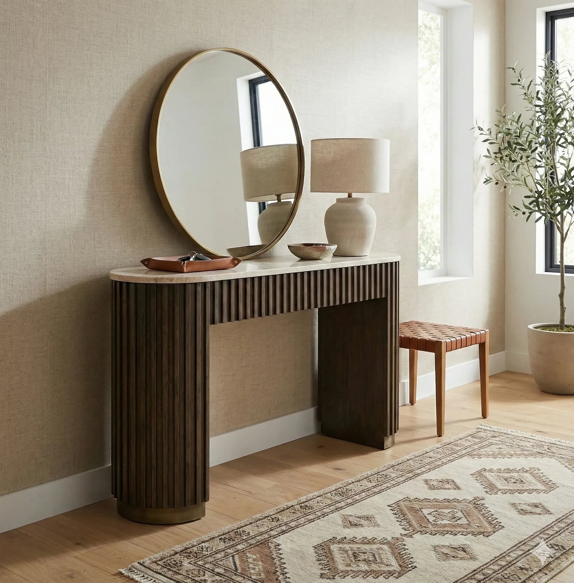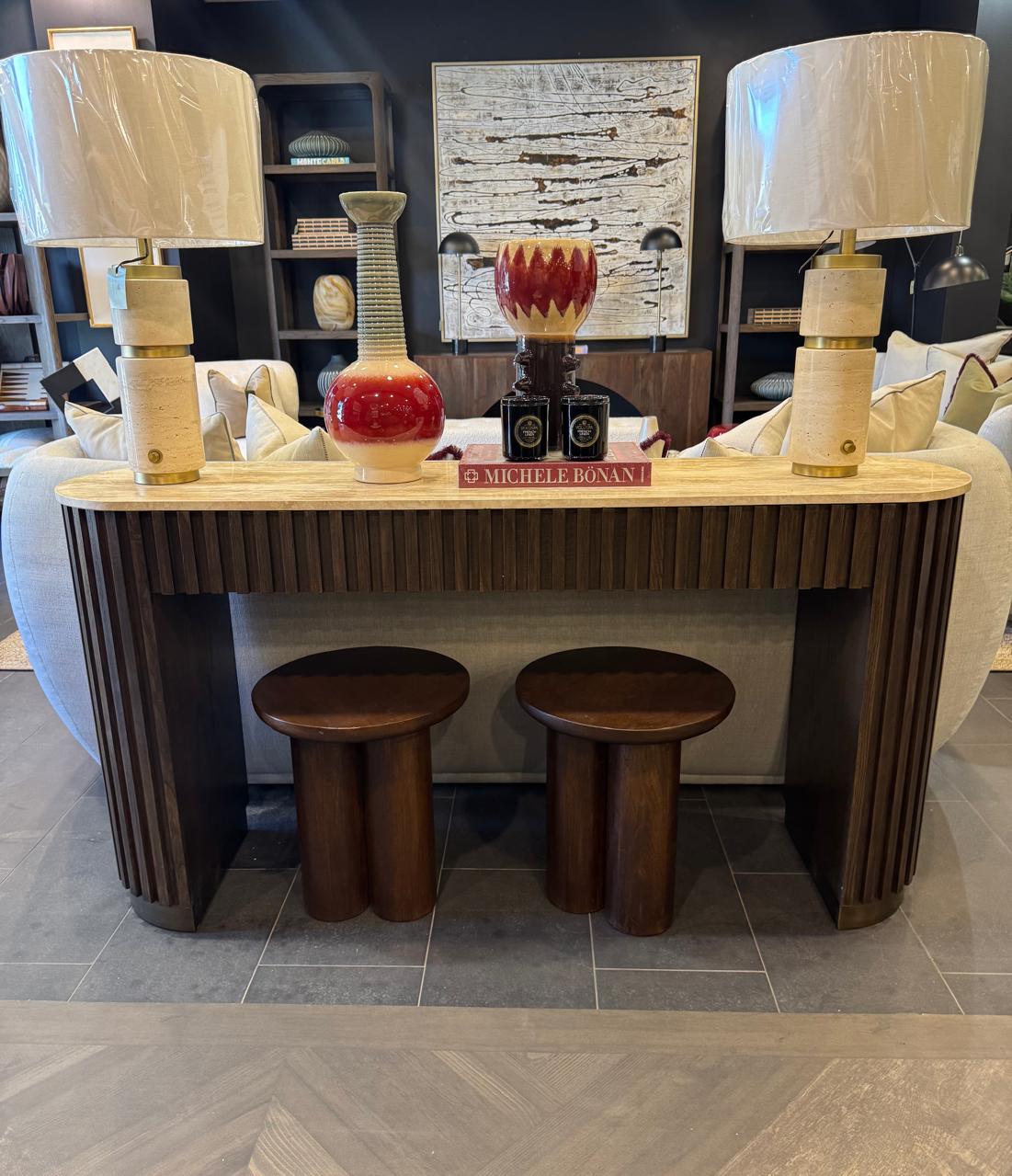 El Arrimo Maximiliano combina una simplicidad moderna con un encanto vintage en una forma elegante y refinada. Los detalles acanalados y escultóricos envuelven la silueta, mientras que los sutiles acentos metálicos añaden un toque de lujo discreto. La cubierta de travertino eleva cualquier espacio con naturalidad. Ya sea combinada con textiles terrosos, iluminación metálica o arte vintage, se integra sin esfuerzo en una amplia variedad de estilos interiores.