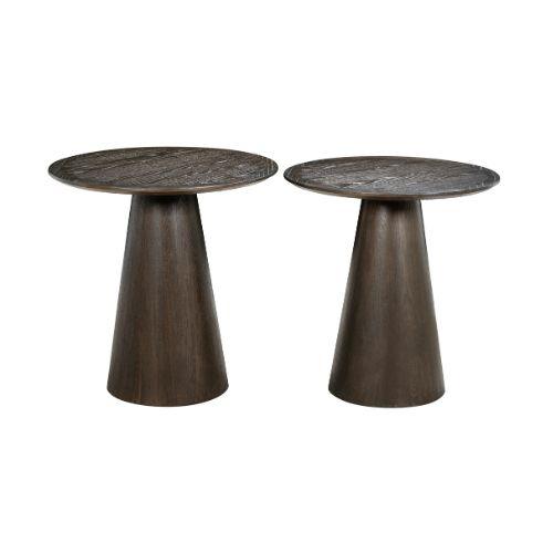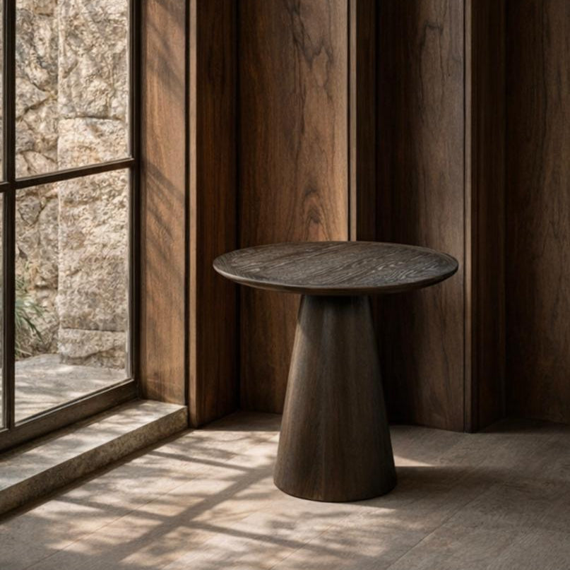 La Mesa Lateral Darien S está elaborada en Roble y tiene en toda su cubierta un enchape de Roble , destacando la belleza natural de la veta de la madera a lo largo de su superficie. Los bordes biselados crean una transición suave y continua, mientras que la base cónica añade una presencia escultórica, transformando la pieza en una mesa funcional y a la vez en una elegante obra de arte.