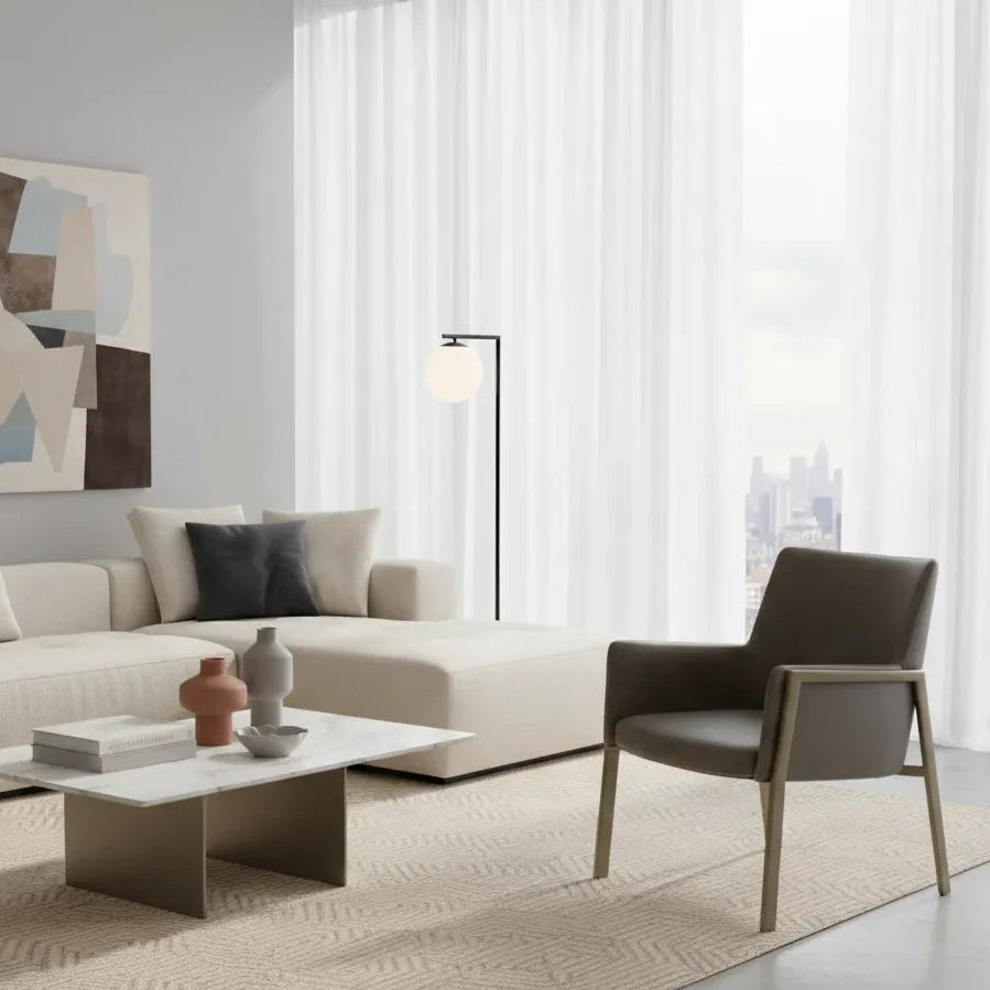 Las Sillas de Comedor Bernarda Bravo combinan diseño contemporáneo con detalles que reflejan confort real y estilo visual. Tapizadas en un tono café suave, su tela de textura aterciopelada aporta calidez y sofisticación a cualquier comedor o rincón del hogar. El respaldo alto con brazos sutiles define una postura acogedora que invita a prolongar una charla, una comida o una pausa de trabajo con absoluta comodidad.