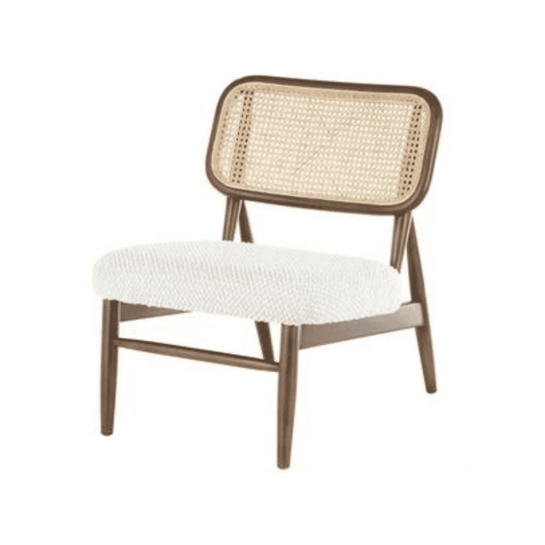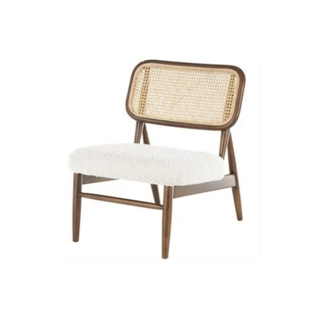 Cada detalle del tapizado y la estructura fue concebido pensando en ofrecer una experiencia tanto estética como funcional. El tejido entrelazado con ratán crea un efecto visual orgánico, mientras que el respaldo envolvente proporciona soporte ergonómico sin rigidez. Al sentarte, sientes cómo la madera clara y la textura natural del tapiz se combinan en una sensación envolvente que invita a prolongar la lectura o la conversación.