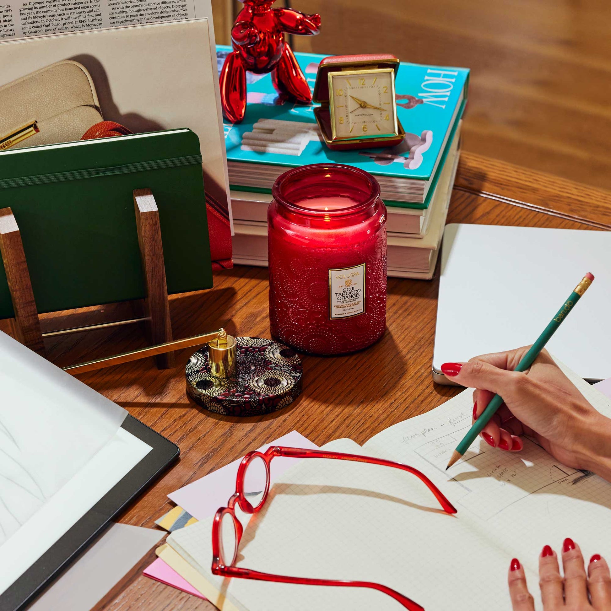 La Vela Roja Voluspa es una pieza decorativa elegante y sofisticada que transforma cualquier espacio con su fragancia intensa y su diseño artístico. Con una mezcla de notas frutales y cítricas, su aroma es equilibrado, vibrante y envolvente, ideal para quienes buscan un ambiente acogedor y lleno de energía positiva.